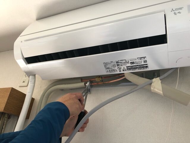 エアコン工事 2025年2月25日 最終更新日時 : 2025年2月25日 akiyaworks エアコン交換工事やってきました。15年活躍したDAIKINが調子悪くなってしまい、交換の依頼。室外機はすぐ裏のベランダへ設置予定。 今回設置のエアコンは三菱霧ケ峰2.8kwスムーズに交換できることを祈る。 おーっと200Vだったので100Vへ変更。 工事も終盤、きっちりトルクレンチで締めこむ ふぅーなんとか完了。試運転も問題なし。 今回、急遽の依頼でしたが、無事に完了しました。だいぶオジサンになってきて、エアコン工事もキツくなってきていますが、電気工事・エアコン工事などお気軽にご連絡ください。 Follow me!
